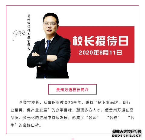 8月11日,贵州万通汽车学校校长接待日火爆来袭。前来报名、咨询的学生、家长可向校长提问题,校长将亲自接待并为学生、家长解疑释惑。