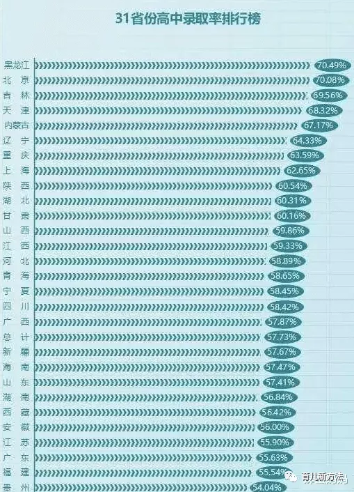 我们翻看了近5年的中考数据发现:全国的中考升学率基本稳定在56-58%,但各省份的中考升学率差距很大,贵州省仅54.04%。